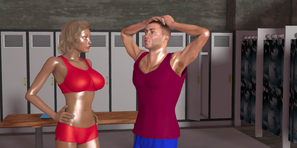 Anne: I tell him I want to make out some more and he can't believe I want to do it in the boys' locker room. I say I like it in here and then he wants to take a shower first. I'm standing there with my tits sticking straight out at him asking to make out and he wants to take a shower! I tell him it would spoil the mood for me if we waited. I knew he wouldn't understand that I want to make out with his current damp male scented self, so I keep that part to myself.